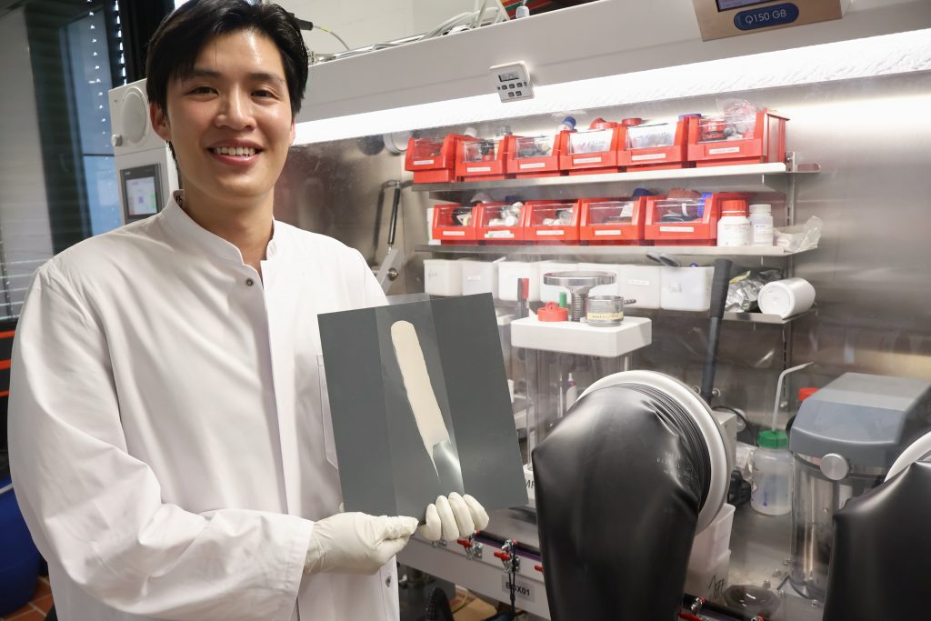 Doktorand Duc Hien Nguyen untersuchte, wie Festelektrolyte optimal aus einer streichfähigen Suspension (Slurry) hergestellt werden können. (Bild: Jeff Wijaya/MPG)